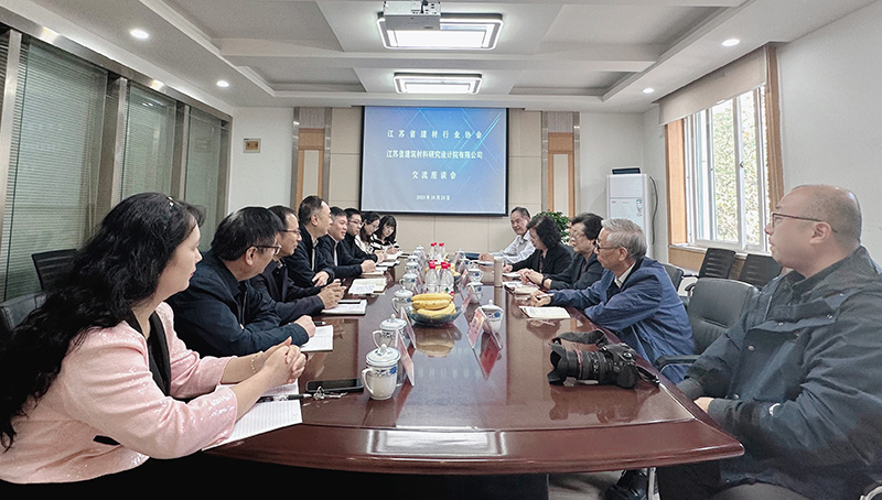 2023年10月23日,江蘇省建材行業(yè)協(xié)會(huì)榮譽(yù)會(huì)長(zhǎng)聶長(zhǎng)蘭、執(zhí)行會(huì)長(zhǎng)張嵐嶸、副會(huì)長(zhǎng)魯照寧、秘書長(zhǎng)王繼勝、副秘書長(zhǎng)張強(qiáng)一行到我院調(diào)研。